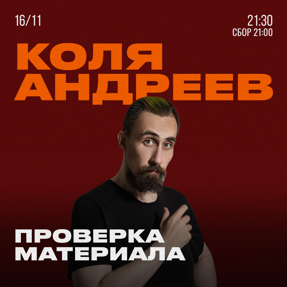 Коля Андреев — интеллигент, утончённый романтик, философ с растянутыми моральными рамками. Ласкает уши тонким умным юмором: смешно не только от самой шутки, но и от изящности мышления. При этом Коля — комик не только для элиты. Даже с тем, кто не понимает его шуток, он хотел бы просто бухнуть и поговорить, выслушать историю о том, как девушка изменила ему на матрасе с эффектом памяти.