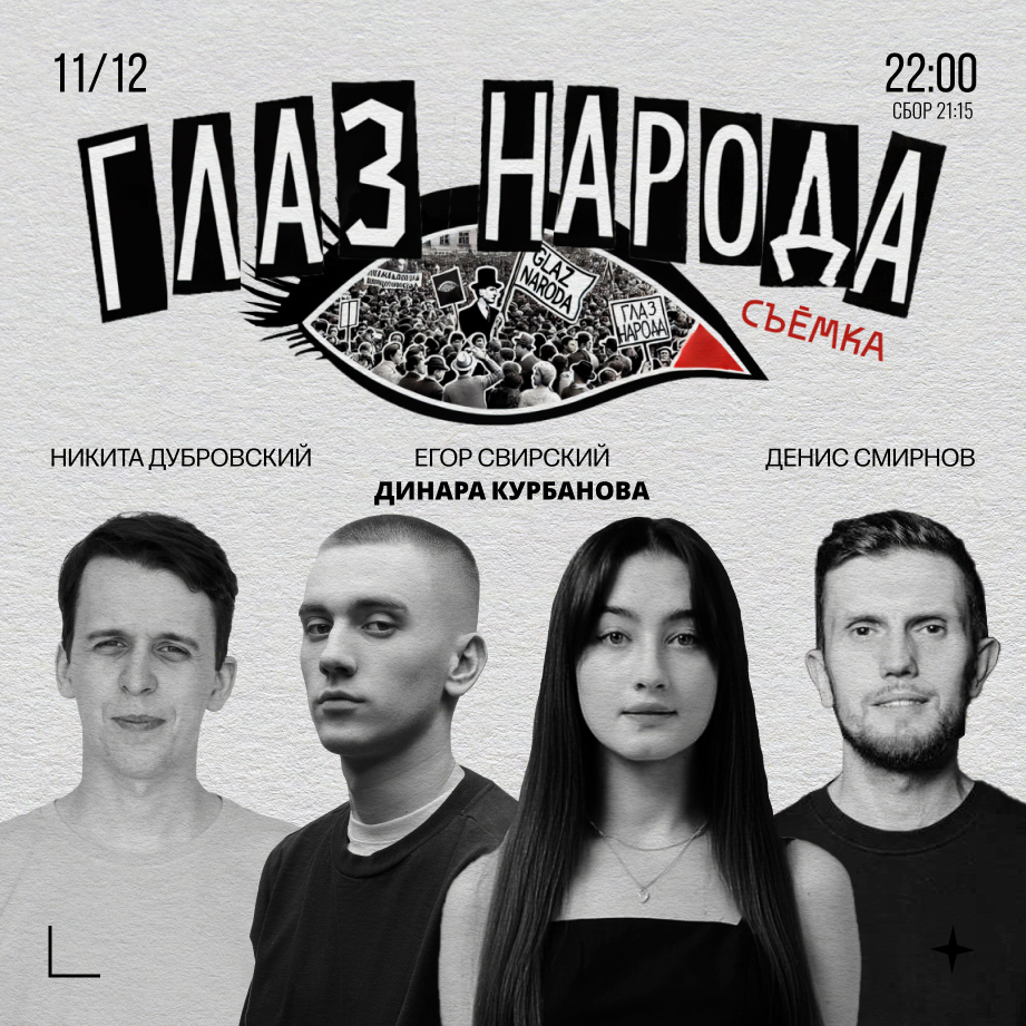 Никита Дубровский, Егор Свирский и Денис Смирнов снимают шоу «Глаз Народа», где комики проводят соцопрос на важные темы, волнующие народ. А потом обсуждают результаты вместе с участникам опроса, т.е. вами, уважаемые зрители!