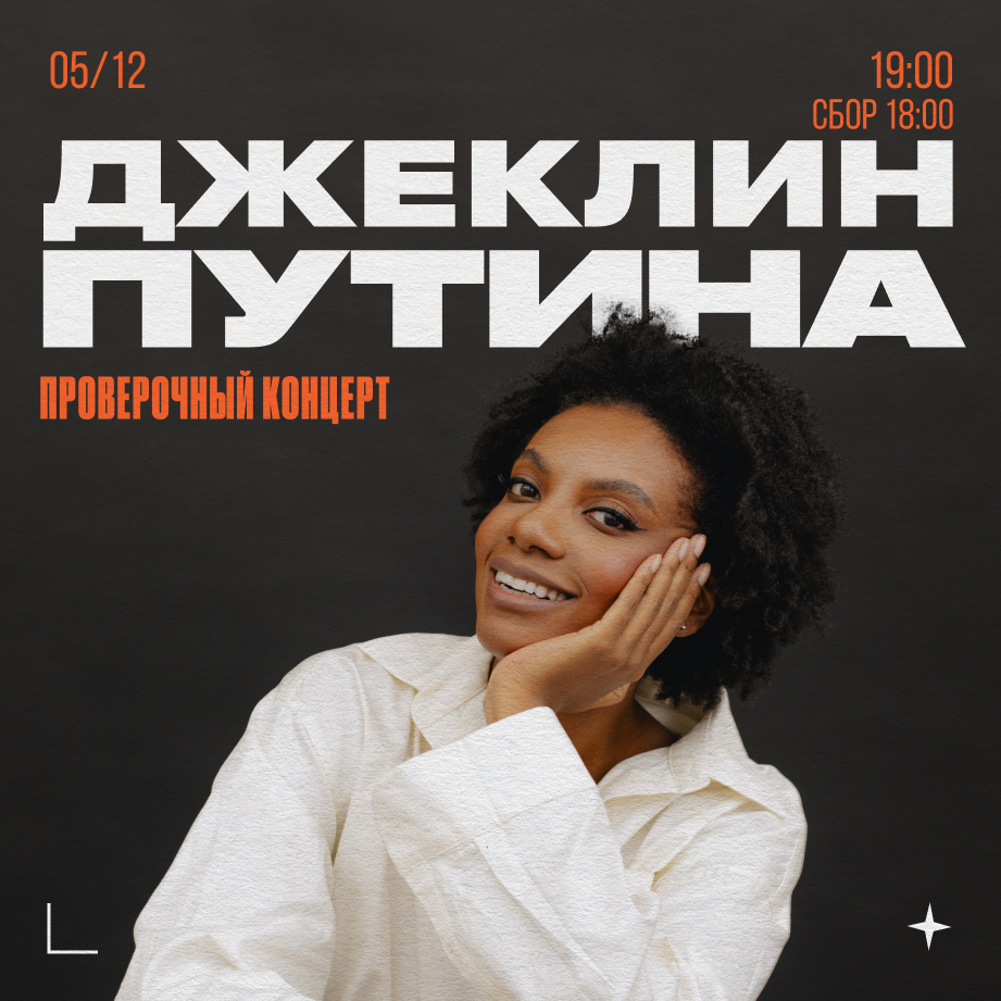 Джеклин Путина тестирует свежий материал: новые шутки, небанальные наблюдения и фирменный юмор. Будет точно смешно и по‑домашнему!