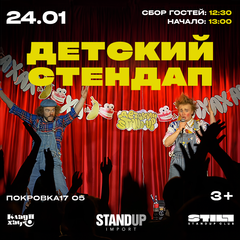 Первый детский Stand-Up концерт с участием лучших клоунов, комиков и артистов оригинального жанра. Эксцентрично-комедийное шоу для всей семьи.