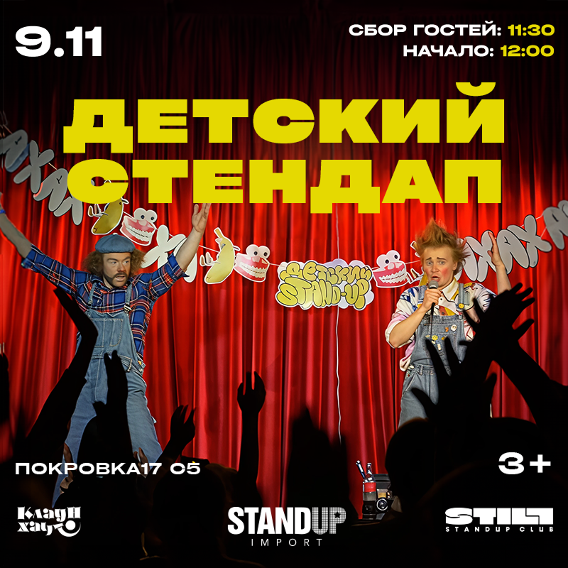 Первый детский Stand-Up концерт с участием лучших клоунов, комиков и артистов оригинального жанра. Эксцентрично-комедийное шоу для всей семьи.