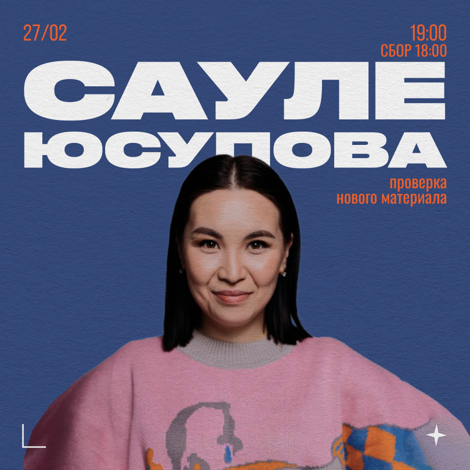 Проверка материала Сауле Юсуповой, участницы шоу «Женский стендап» на телеканале ТНТ. Автор монологов, построенных на личном опыте, социальных наблюдениях и культурных различиях.