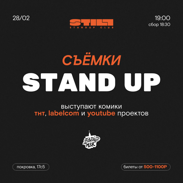 Это съёмки StandUp от StandUp_Msk. Комики выступают с лучшим материалом и записывают свои монологи, которые чуть позже можно будет посмотреть на YouTube или на других интернет платформах.