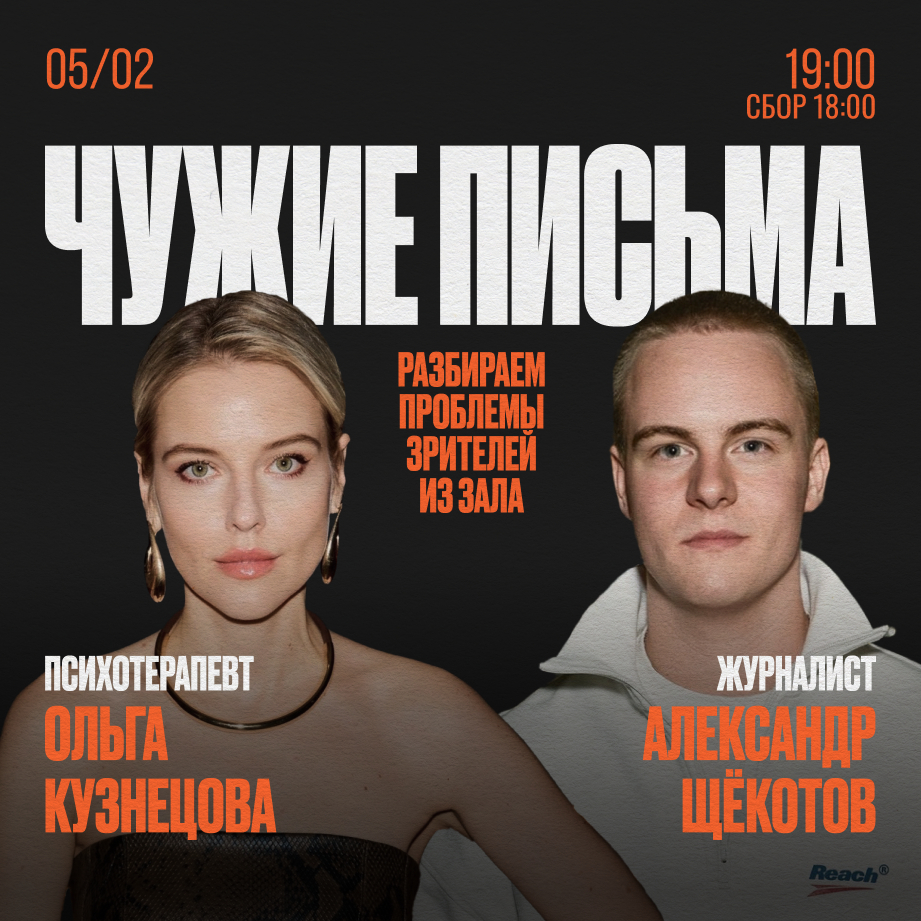 Офлайн-концерт проекта «Чужие письма». Вместо писем — истории из зала. Психотерапевт Ольга Кузнецова и ведущий проекта «Просто повезло» Александр Щёкотов послушают ваши истории и выдвинут предположения о возникновении и решении описанных проблем через призму психоанализа и житейского опыта. Душевно и с юмором. Ждём вас!