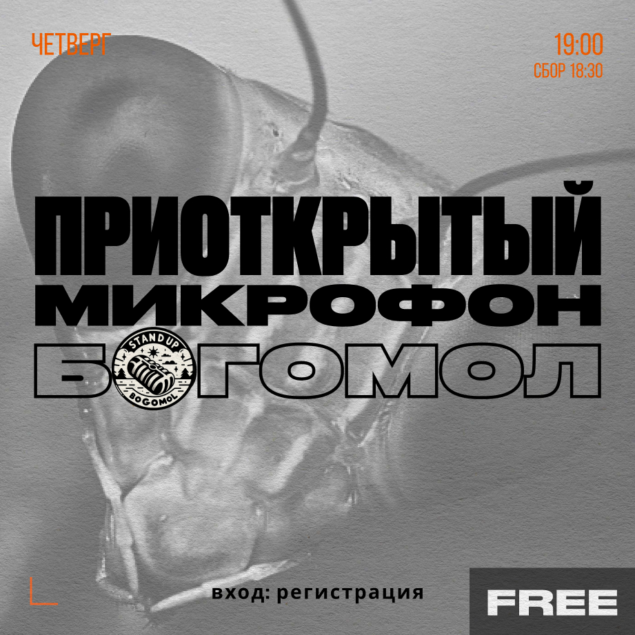 Стендап Богомол снова приоткрывает двери на свой приоткрытый микрофон. Всё ещё незнакомые Вам комики, которых Вы можете увидеть только здесь, так как их больше никуда не берут. Не берут только потому, что своим талантом они могут затмить всех звёзд комедии. Шутка.